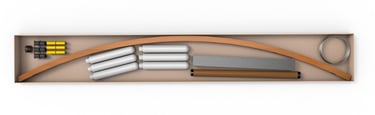 La parte cóncava del soporte presenta una hendidura de 4mm donde se alojan los cables y seis fresados circulares para permitir atornillar los portalámparas, quedando prácticamente ocultos.
