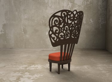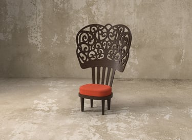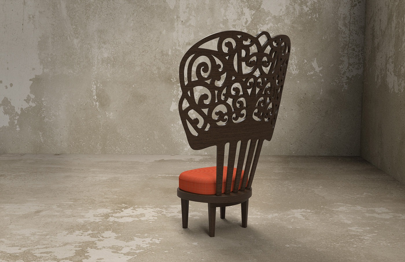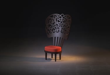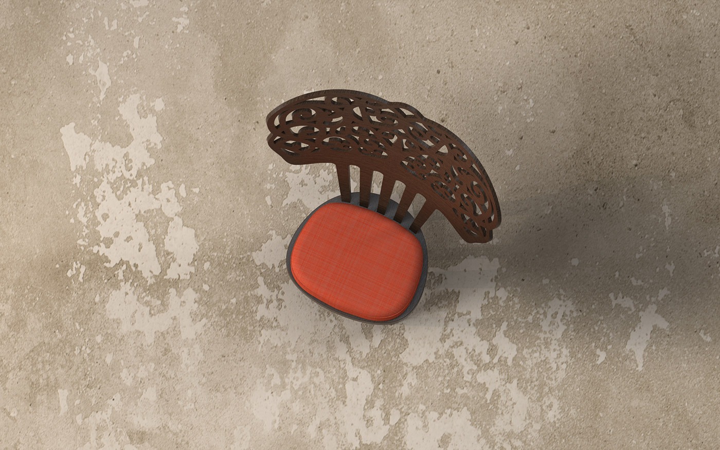 El diseño se apropia de la tradicional e icónica peineta española, dando lugar a una silla folclórica, extravagante y simpática.