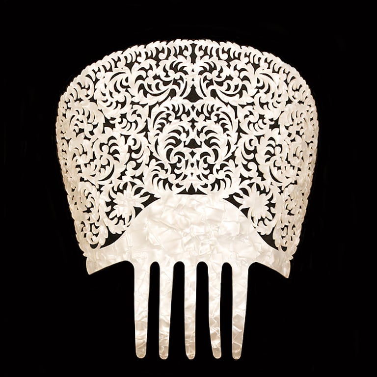 La peineta es uno de los accesorios del adorno personal más relacionados con la idiosincrasia española. Se trata de un ornamento femenino para el cabello de cuerpo convexo y un conjunto de púas que va sujeto en el moño. Su uso se generalizó en las últimas décadas del siglo XVIII y fue extendiéndose progresivamente entre la realeza y la aristocracia. Su utilización llegó a reivindicarse como forma de confrontar la moda procedente de París que se extendía por Europa.