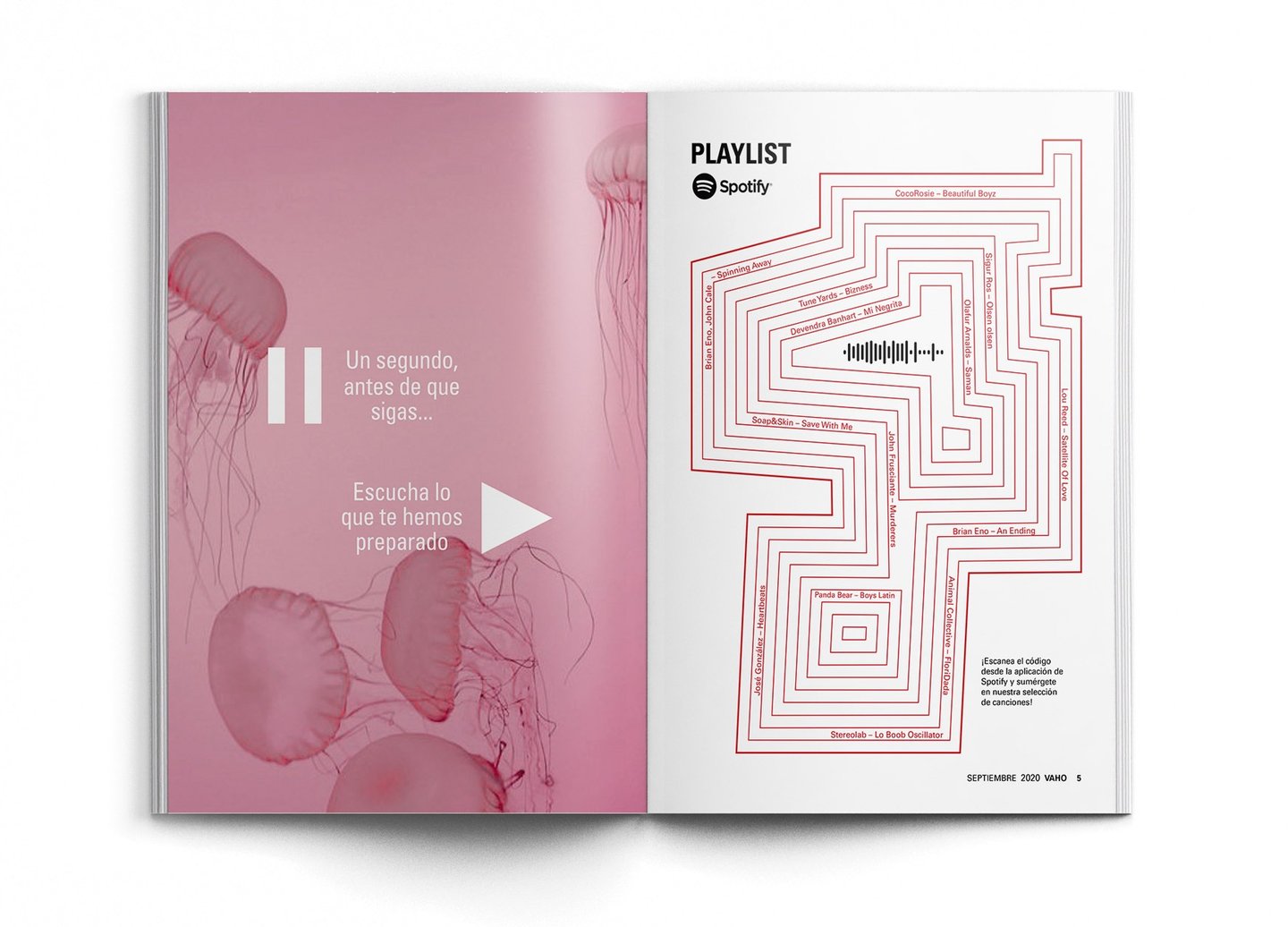 Estas piezas base se utilizan también en la contracubierta, a modo de pictogramas agrupados, y servirán como patrón para generar gráficos en algunas secciones, como por ejemplo la página Playlist.